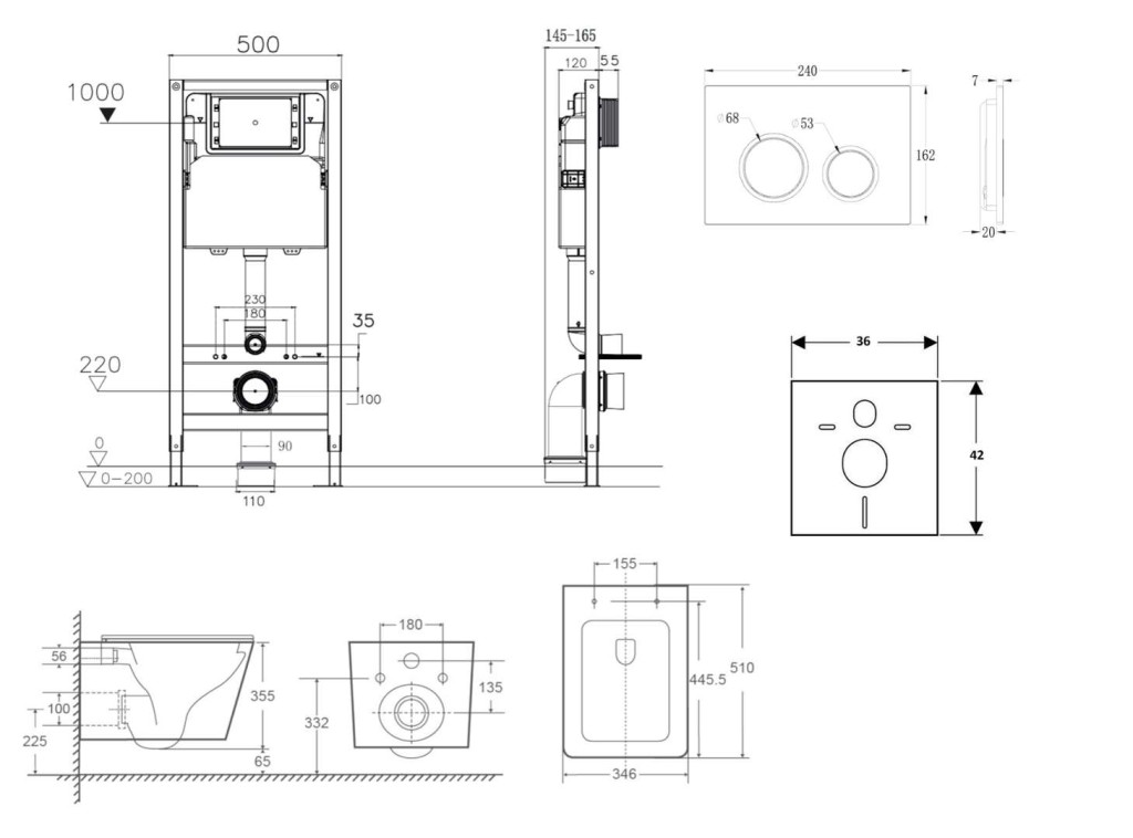 - Pro montáž závěsného WC s připojovací roztečí 180 mm
