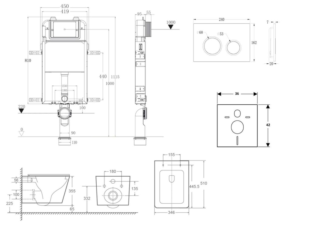 - Pro montáž závěsného WC s připojovací roztečí 180 mm