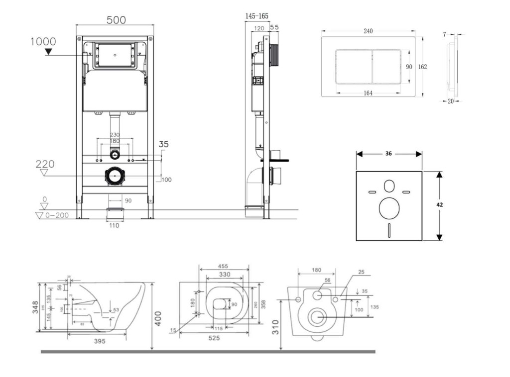 - Pro montáž závěsného WC s připojovací roztečí 180 mm