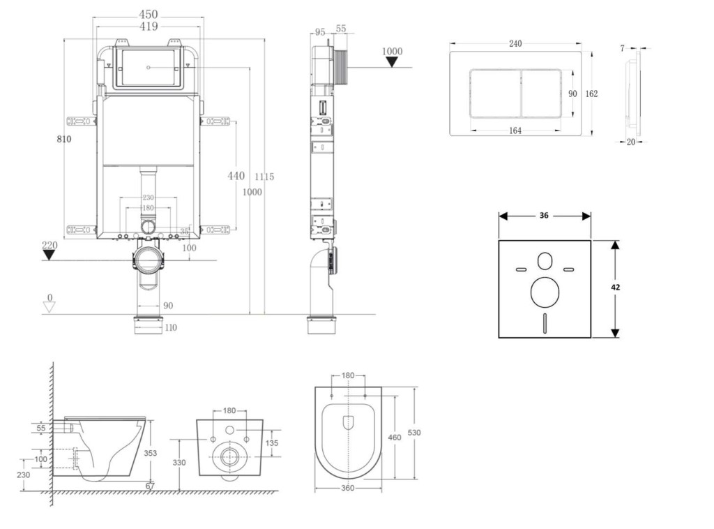 - Pro montáž závěsného WC s připojovací roztečí 180 mm