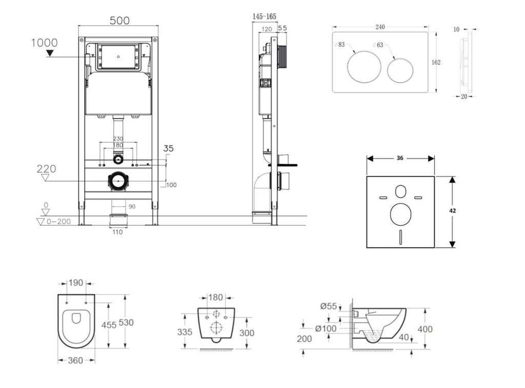 - Pro montáž závěsného WC s připojovací roztečí 180 mm