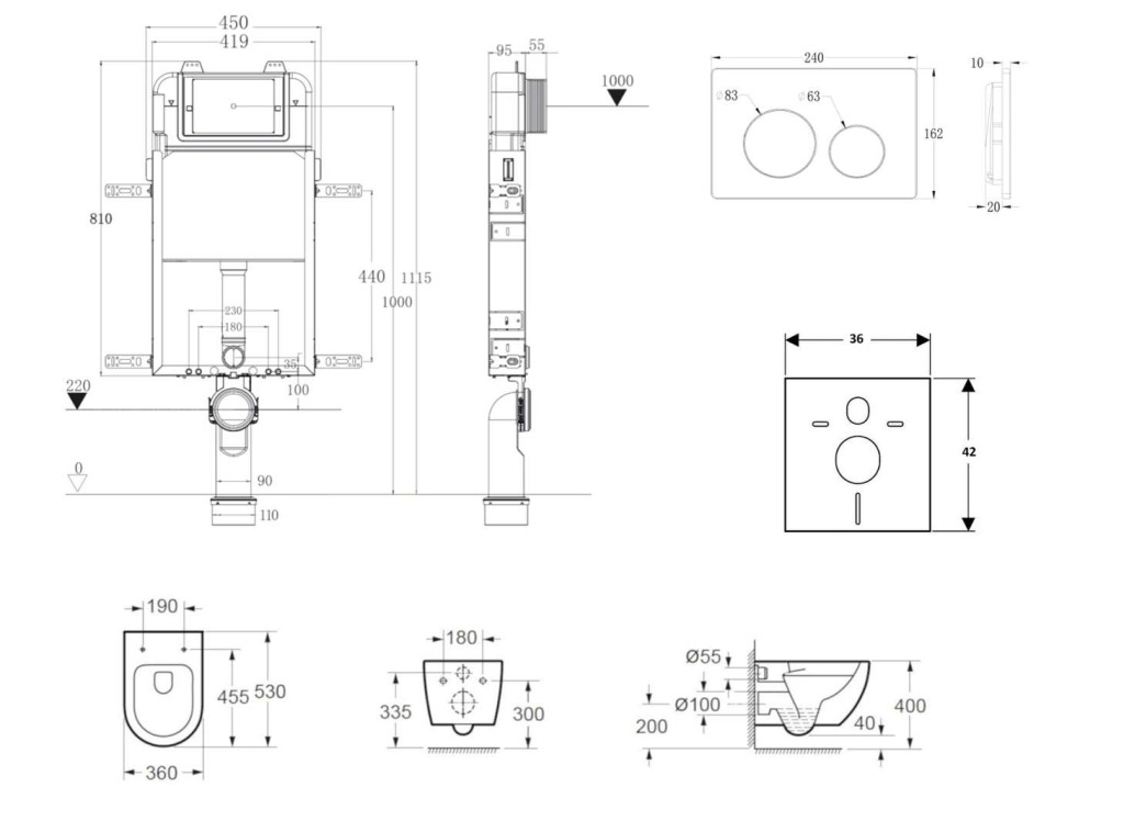 - Pro montáž závěsného WC s připojovací roztečí 180 mm