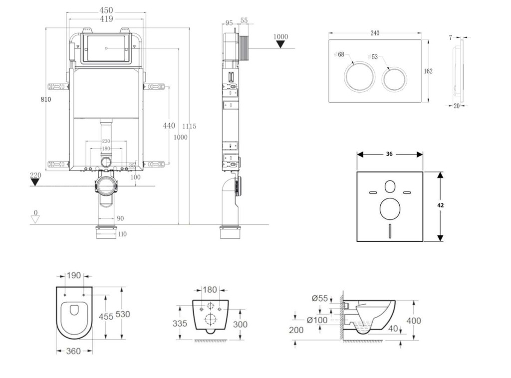 - Pro montáž závěsného WC s připojovací roztečí 180 mm