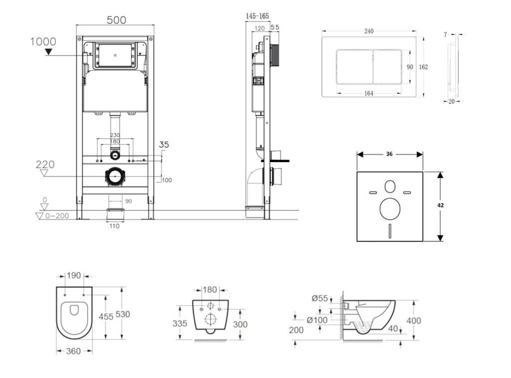 - Pro montáž závěsného WC s připojovací roztečí 180 mm