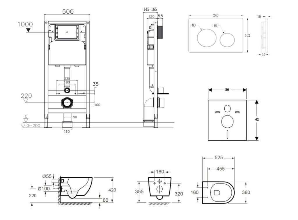 - Pro montáž závěsného WC s připojovací roztečí 180 mm