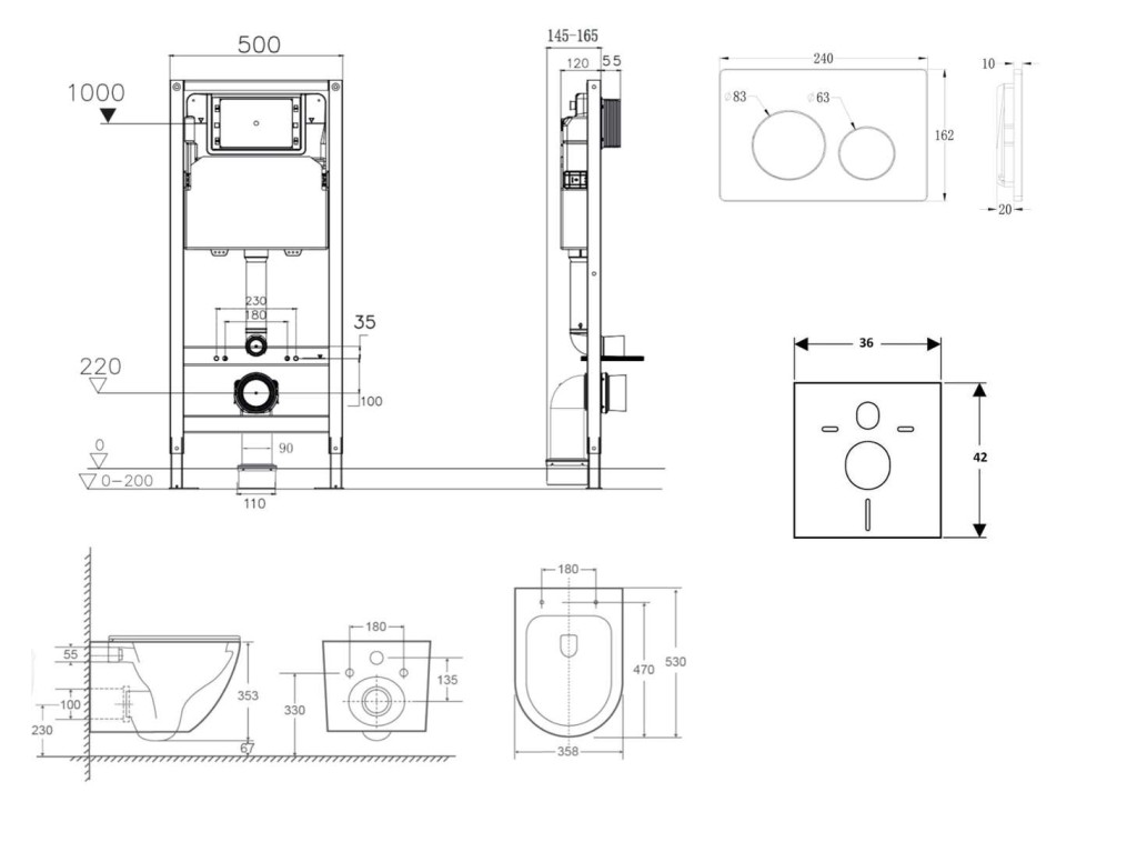 - Pro montáž závěsného WC s připojovací roztečí 180 mm