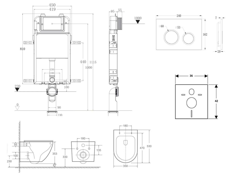 - Pro montáž závěsného WC s připojovací roztečí 180 mm