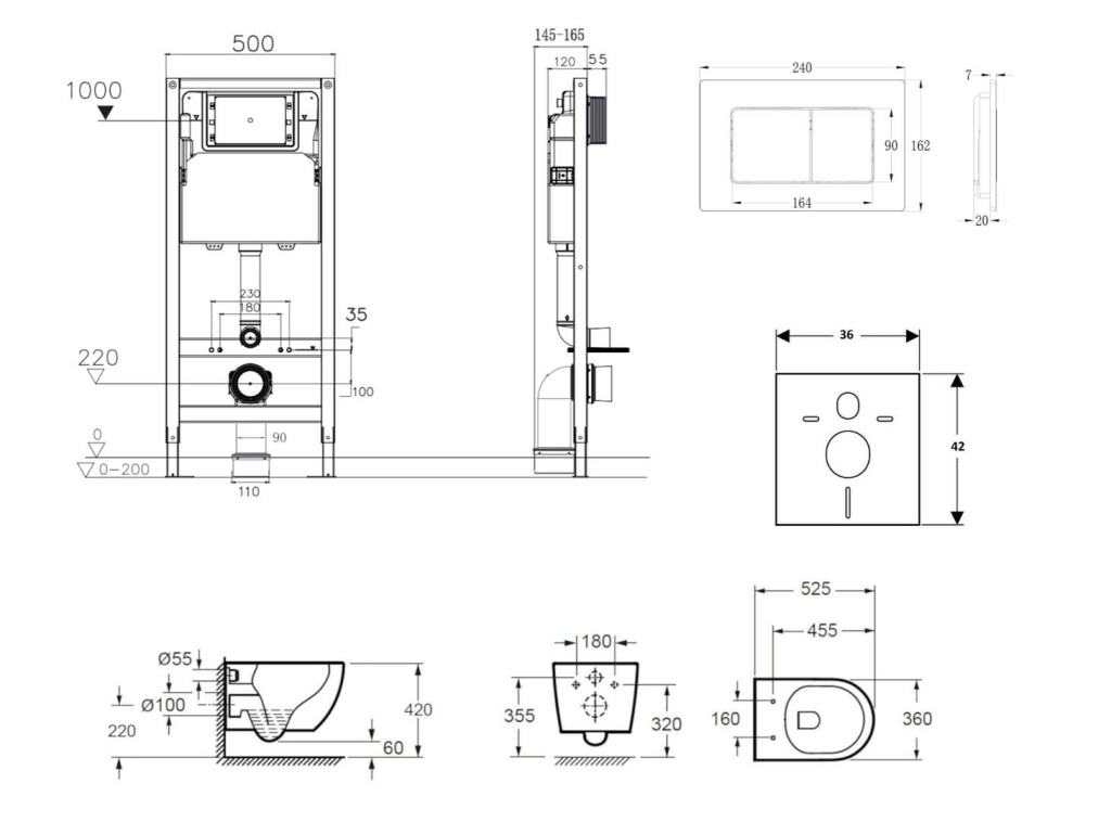 - Pro montáž závěsného WC s připojovací roztečí 180 mm
