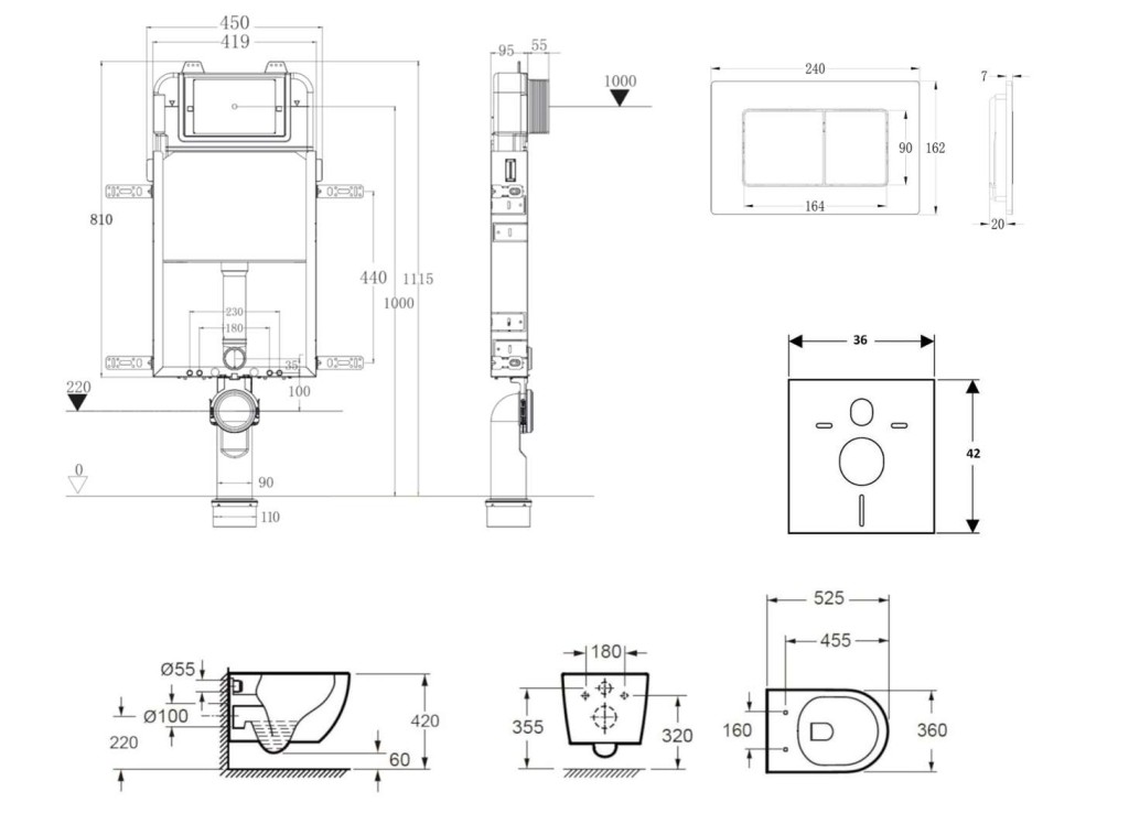 - Pro montáž závěsného WC s připojovací roztečí 180 mm