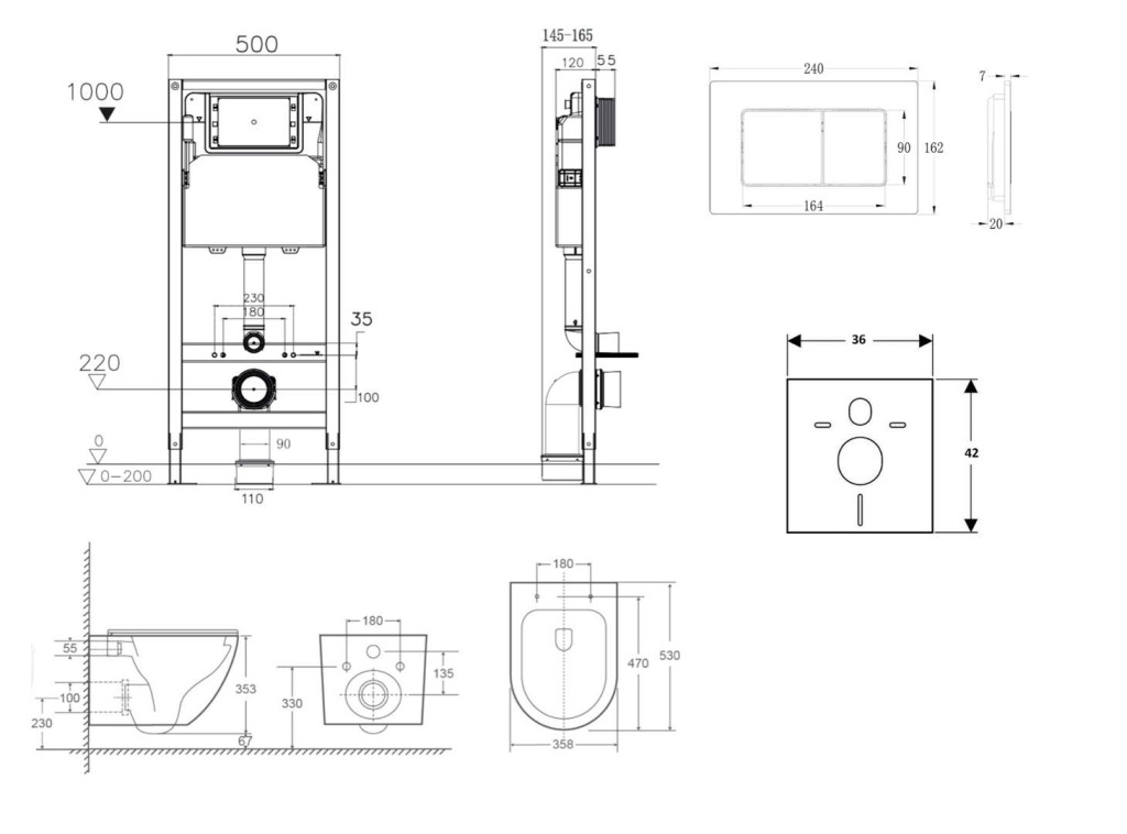 - Pro montáž závěsného WC s připojovací roztečí 180 mm