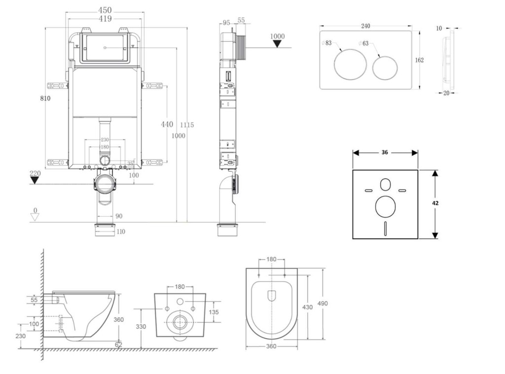 - Pro montáž závěsného WC s připojovací roztečí 180 mm