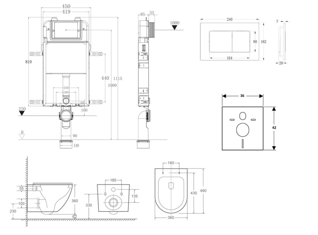 - Pro montáž závěsného WC s připojovací roztečí 180 mm