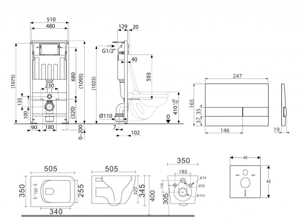 - Pro montáž závěsného WC s připojovací roztečí 180 mm