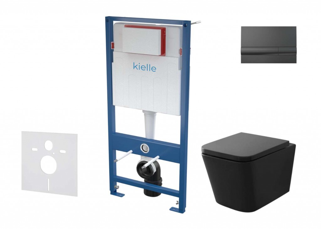 Kielle - Genesis Set předstěnové instalace, klozetu Arkas I, sedátka softclose a tlačítka Gemini I, lesklá černá (30505SS10)