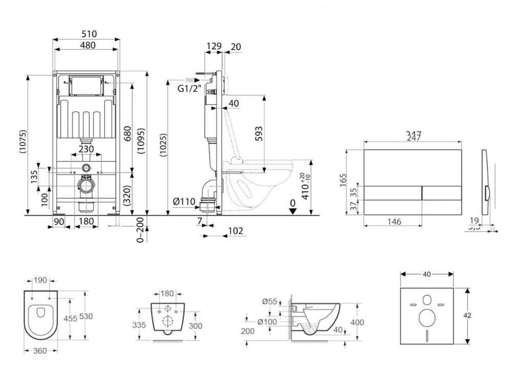 - Pro montáž závěsného WC s připojovací roztečí 180 mm