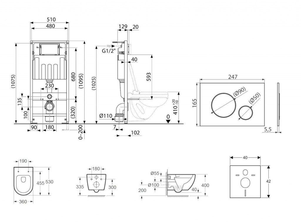 - Pro montáž závěsného WC s připojovací roztečí 180 mm