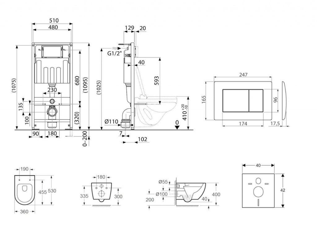 - Pro montáž závěsného WC s připojovací roztečí 180 mm