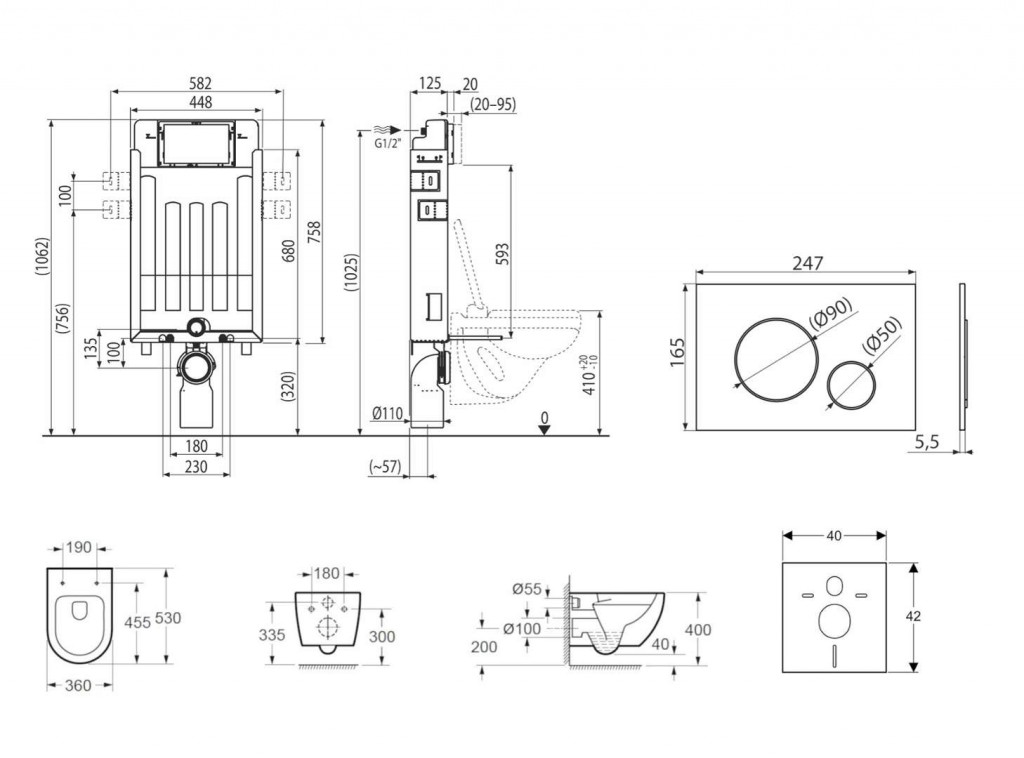 - Pro montáž závěsného WC s připojovací roztečí 180 mm