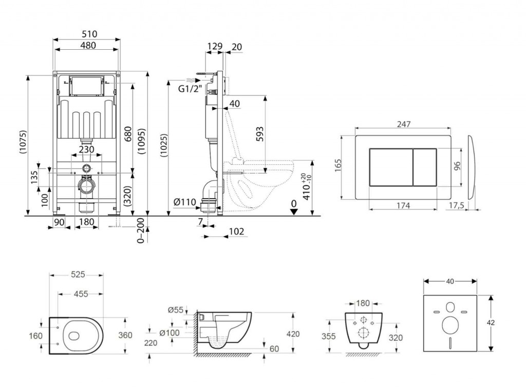 - Pro montáž závěsného WC s připojovací roztečí 180 mm