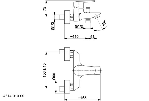 Nástěnná vanová baterie GERMAN od výrobce KFA ARMATURA s roztečí 150 mm.