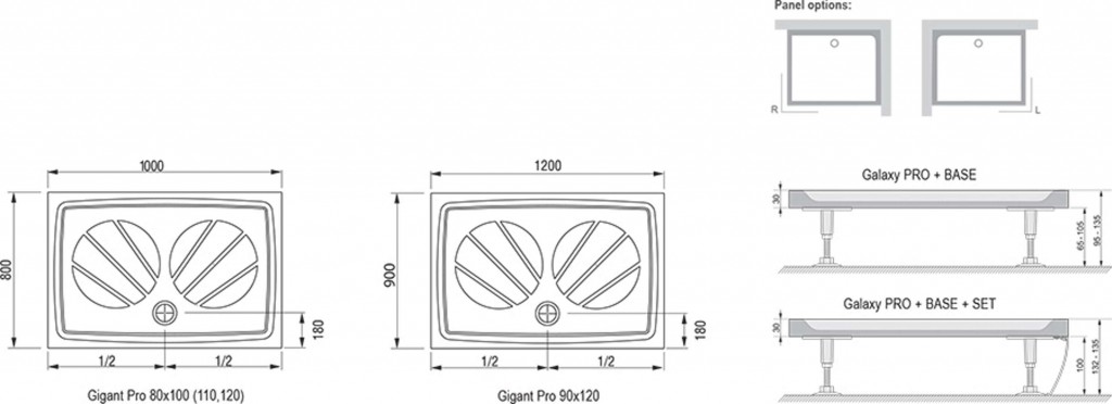 Nožičky, panel a sifon k vaničce nejsou součástí dodávky.