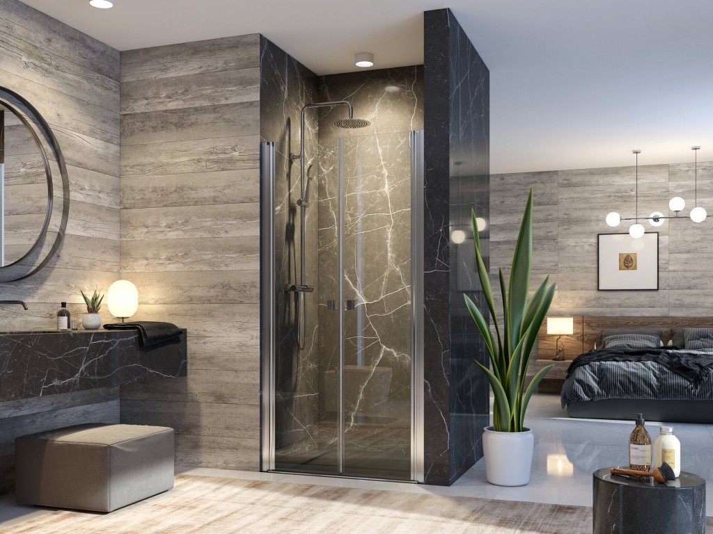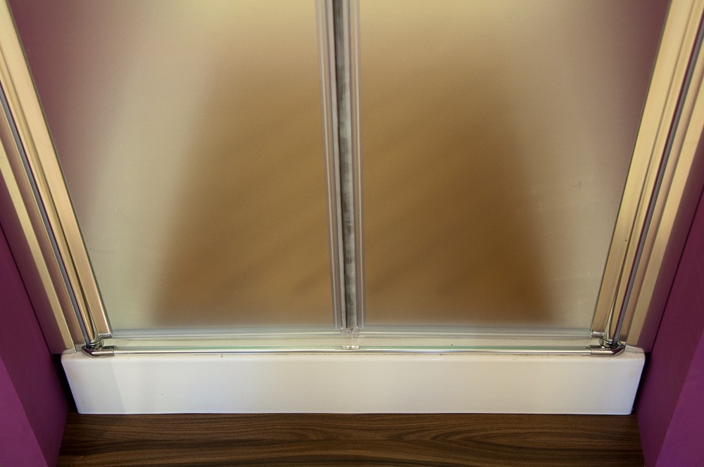Dveře do niky série GLASS s uchycením pantů v profilu a 6mm silné bezpečnosní sklo.