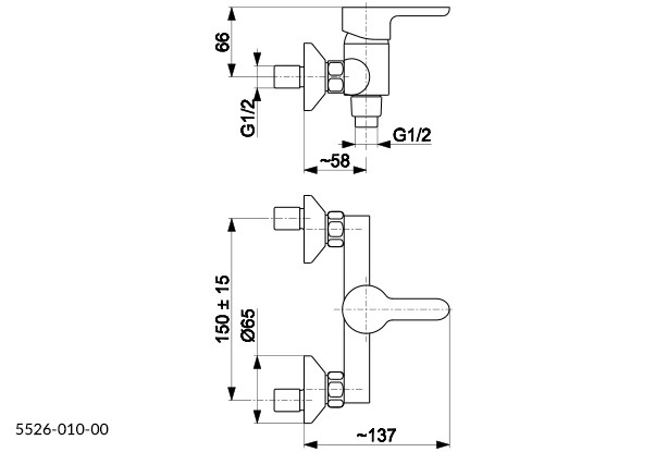 Nástěnná sprchová baterie GRANAT od výrobce KFA ARMATURA s roztečí 150 mm bez příslušenství.