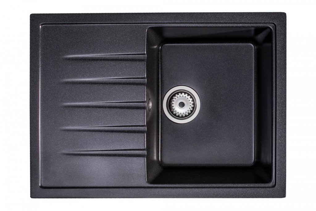 - žulový kuchyňský dřez v černé barvě s kratším odkapem