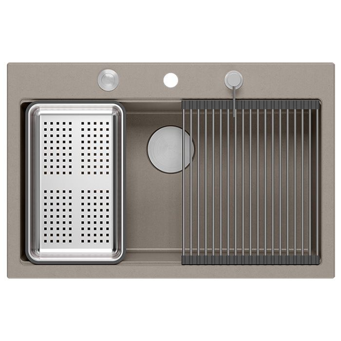 Granitový dřez se svým minimalistickým, moderním vzhledem hodí do aranžmá každé kuchyně. Hluboká a prostorná komora zajišťuje vysoký komfort používání. Dřez, který nabízíme, je skvělou volbou pro zákazníky, kteří ocení kvalitu a zpracování. Nadčasový tvar, použití prvotřídních materiálů a technologií, skvělý design a kompatibilita použitých řešení zaručují dokonalý konečný výsledek a vyplní každý kuchyňský prostor. K dispozici jsou různé barevné varianty. Tento model je velmi bohatě vybaven doplňkovými kuchyňskými doplňky. Dřez je dodáván s dávkovačem tekutin, bambusovým prkénkem, odkapávačem a válcovanou ocelovo-silikonovou podložkou (není součástí sady ve zlaté a měděné variantě).