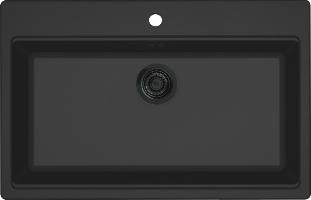 Granitový dřez 79x51 cm, povrch černý Nero Black, horní montáž
