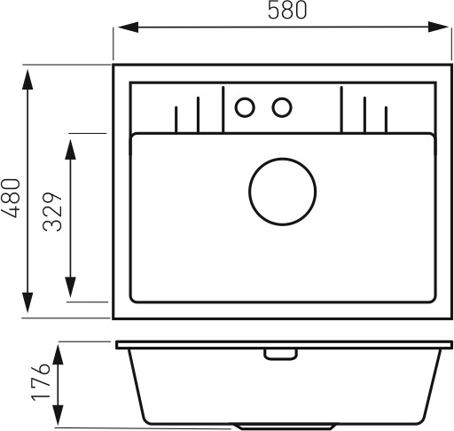 Granitový dřez s přepadem. Dřez má rozměry 58x48 cm a hloubku 17,6 cm. Automatické otevírání a zavírání výpusti knoflíkem. Součástí balení je sifon. Prodloužená záruka 15 let.Parametry