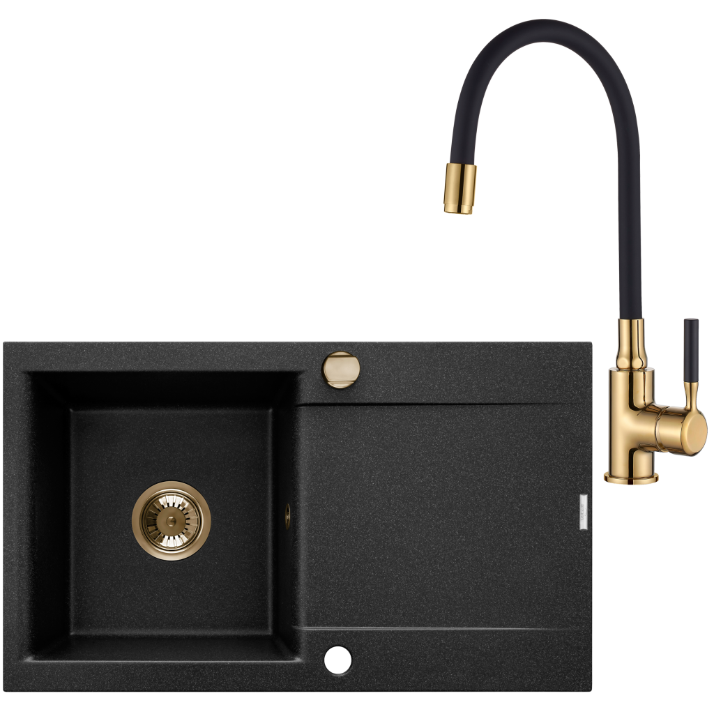 Kuchyňská baterie GLAMOUR je kombinací dvou barev, které jsou v poslední době extrémně moderní - černá a zlatá. Samotná baterie bude v kuchyni úžasnou ozdobou.