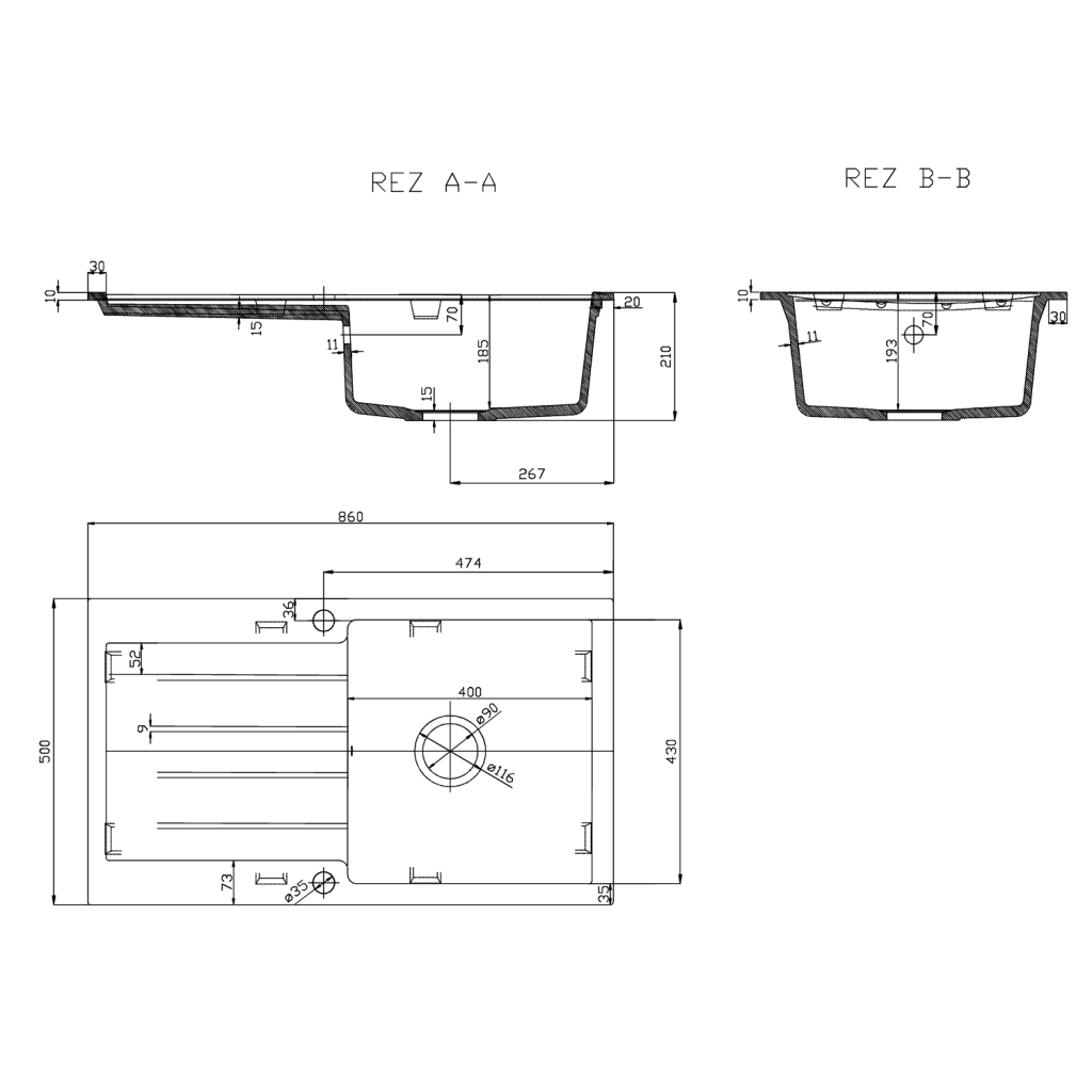 | Minimální šířka dřezové skříňky | 500 mm |