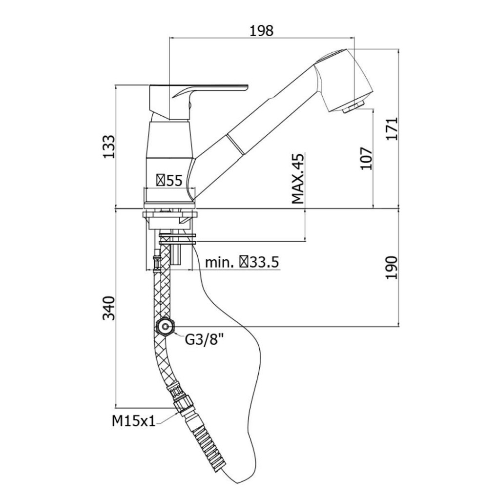 - s vytahovací sprškou a přepínačem mezi 2 proudy sprška/proud