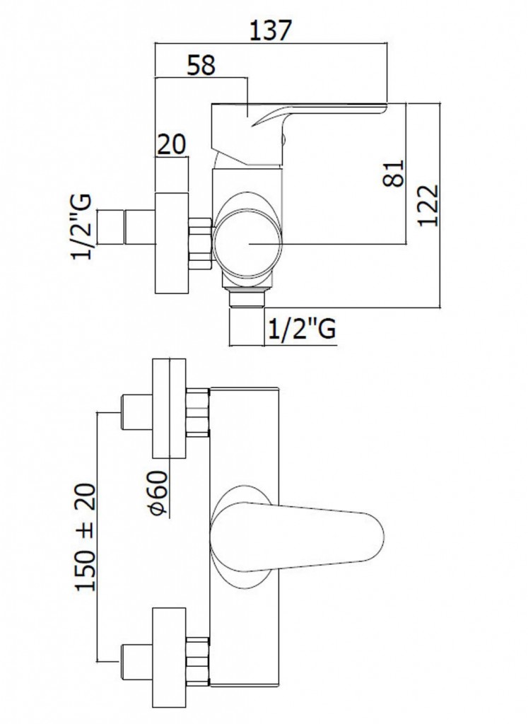Sprchová nástěnná páková baterie včetně ruční sprchy, držáku a flexibilní hadice