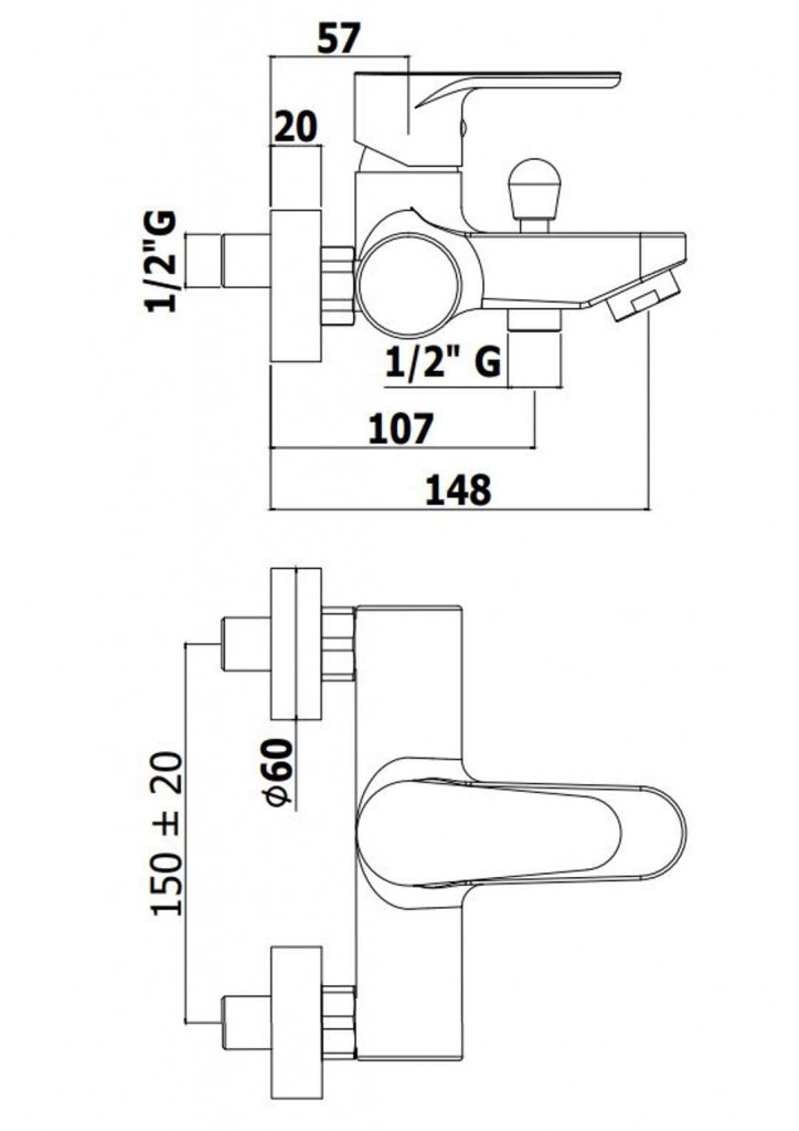 Nástěnná vanová baterie včetně sprchové hlavice, držáku a hadice