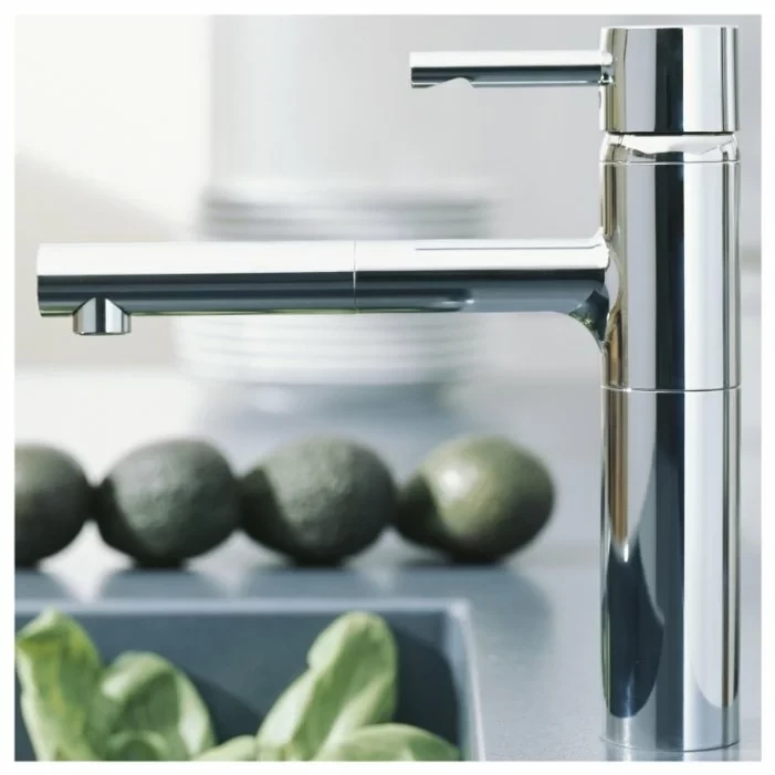 Líbí se vám preciznost v kuchyni? Dokonale upravená zelenina, dokonale chlazené víno, dokonale vařené maso? Pak čisté linie kuchyňské baterie Essence budou přesně to pravé pro Vás, válcový kosmopolitní design vydrží kontrolu i toho nejnáročnějšího mistra šéfkuchaře.