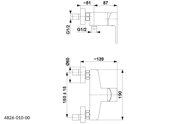 Nástěnná sprchová baterie HALIT od výrobce KFA ARMATURA s roztečí 150 mm bez příslušenství.