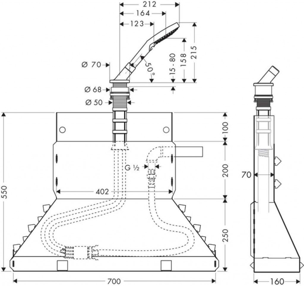 - vhodná pro montáž na okraj vany nebo vanový sokl (montážní deska není součástí dodávky)
