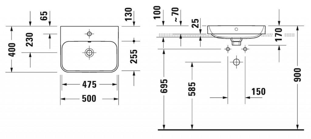 - bez otvoru pro umyvadlovou baterii