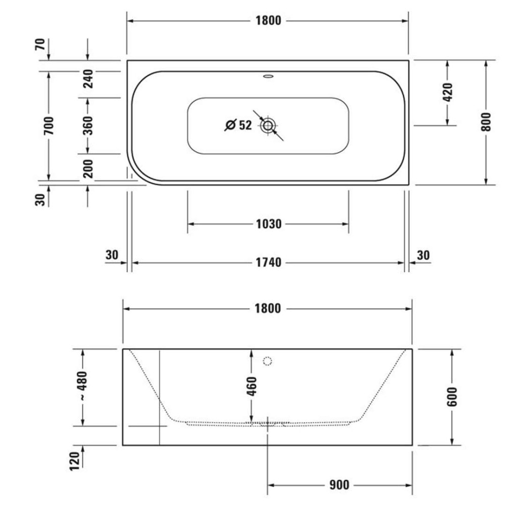 - odtokový otvor průměr 52 mm