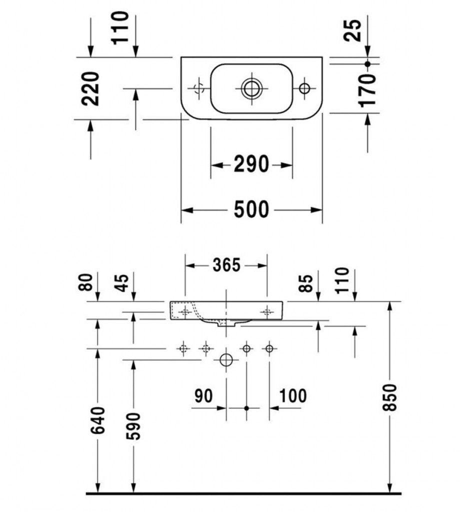 - s 1 otvorem pro umyvadlovou baterii vpravo