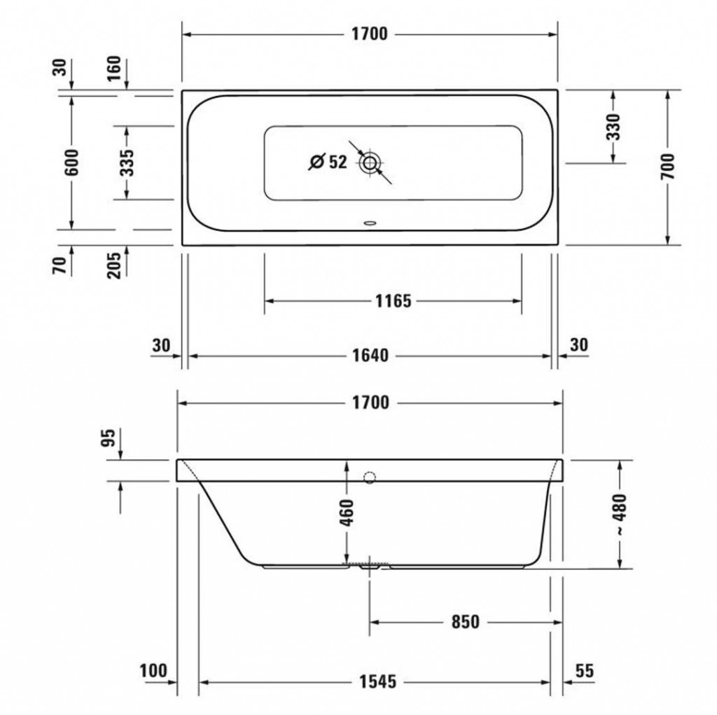 - odtokový otvor průměr 52 mm
