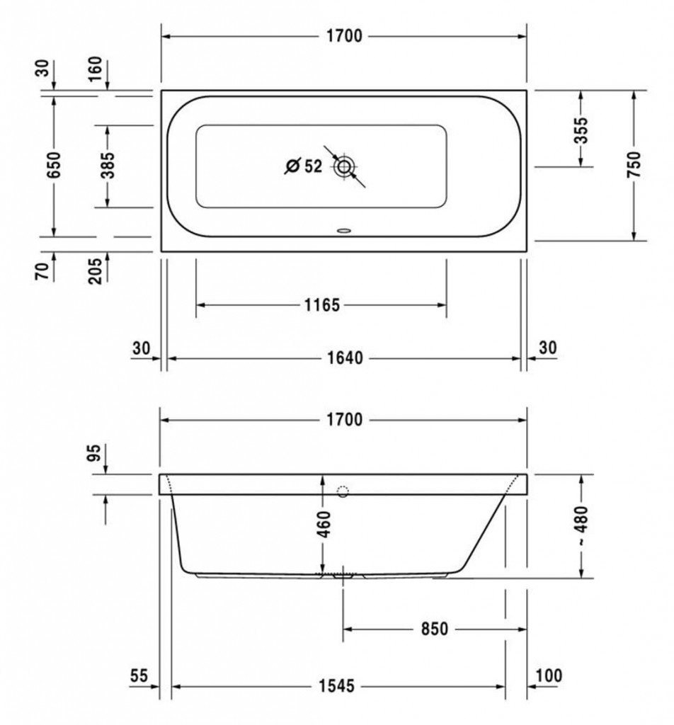 - odtokový otvor průměr 52 mm