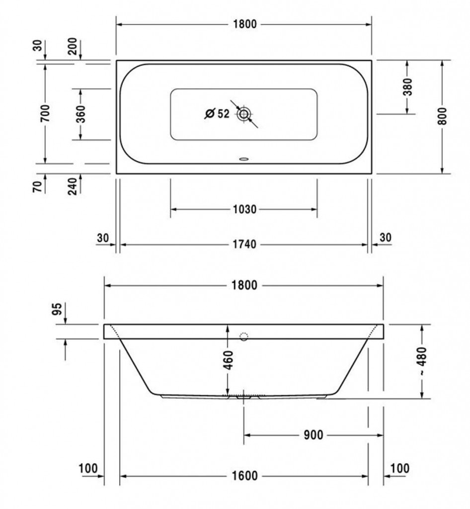 Odtoková souprava ani podpora vany nejsou součástí balení, nutné dokoupit zvlášť.