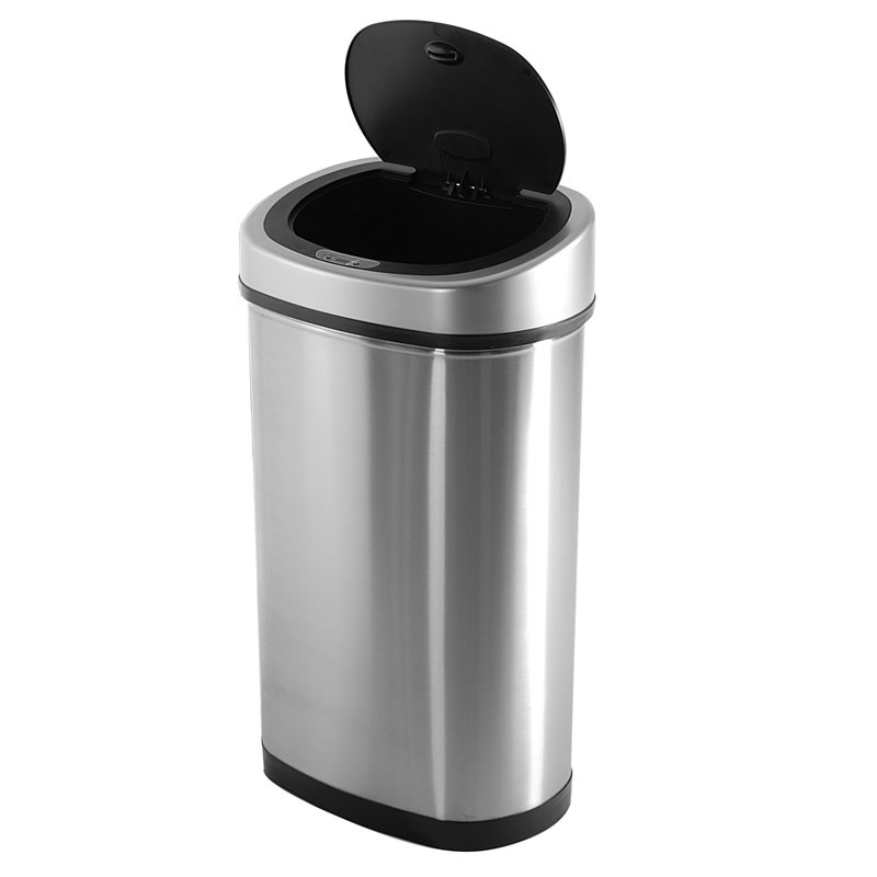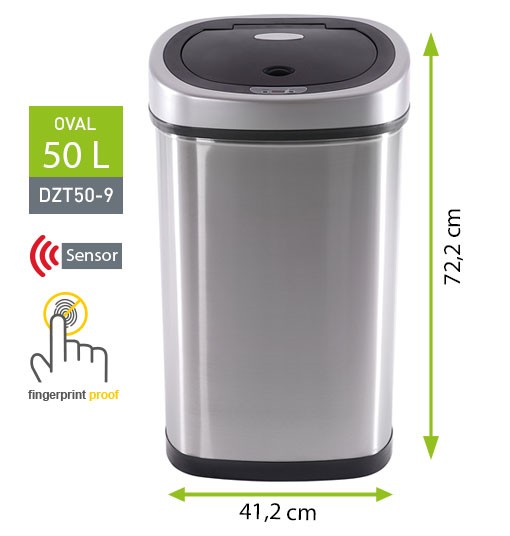 Bezdotykový odpadkový koš Helpmation řady OVAL s infračerveným senzorem nabízí hygienické nakládání s odpadem. Při přiložení ruky 20 cm nad infračervený senzor koše se víko automaticky a velice tiše otevře. Po vhození odpadu se víko samo zavře. Koše Helpmation se vyznačují kvalitním zpracováním, úsporným provozem a tichým systémem otevírání a zavírání víka.