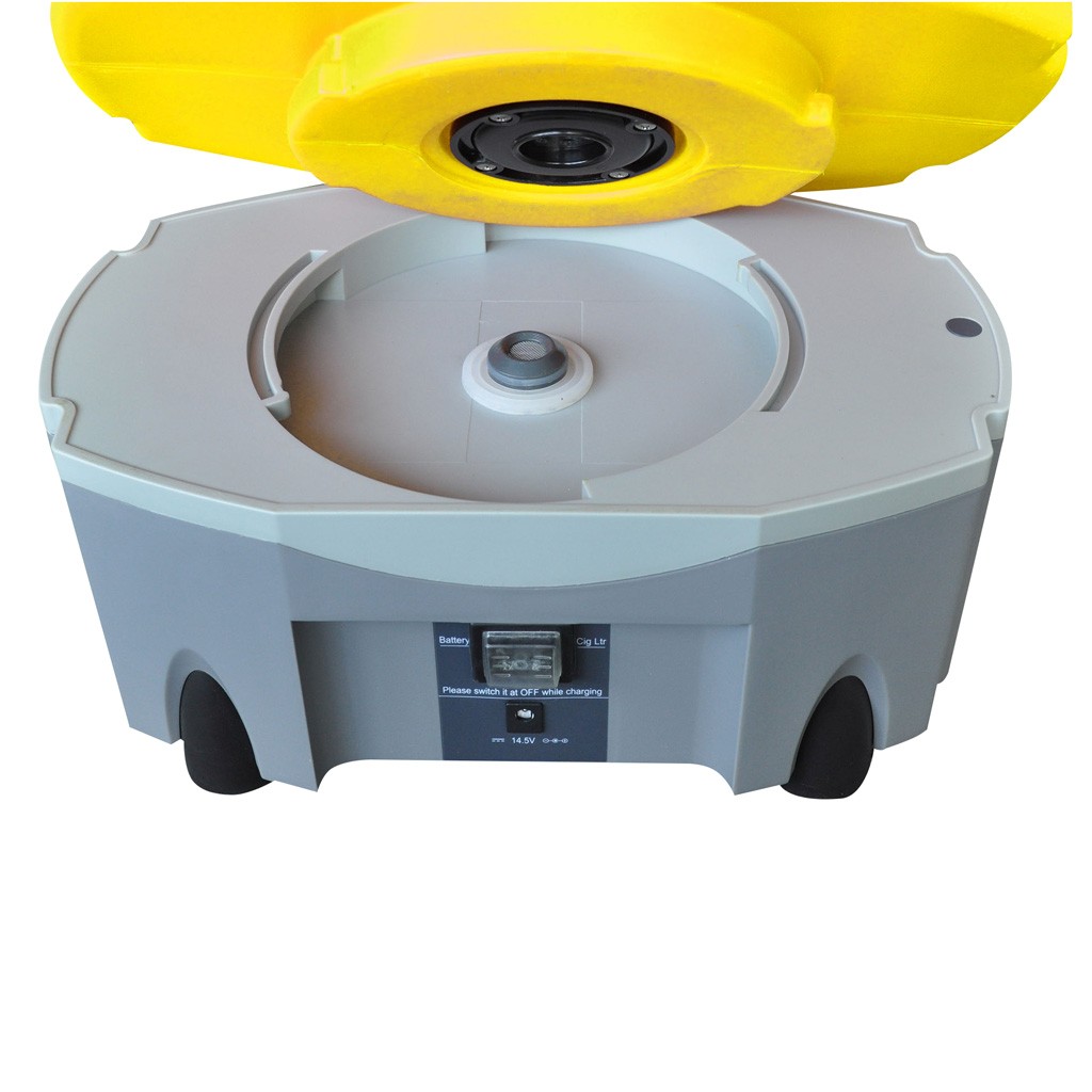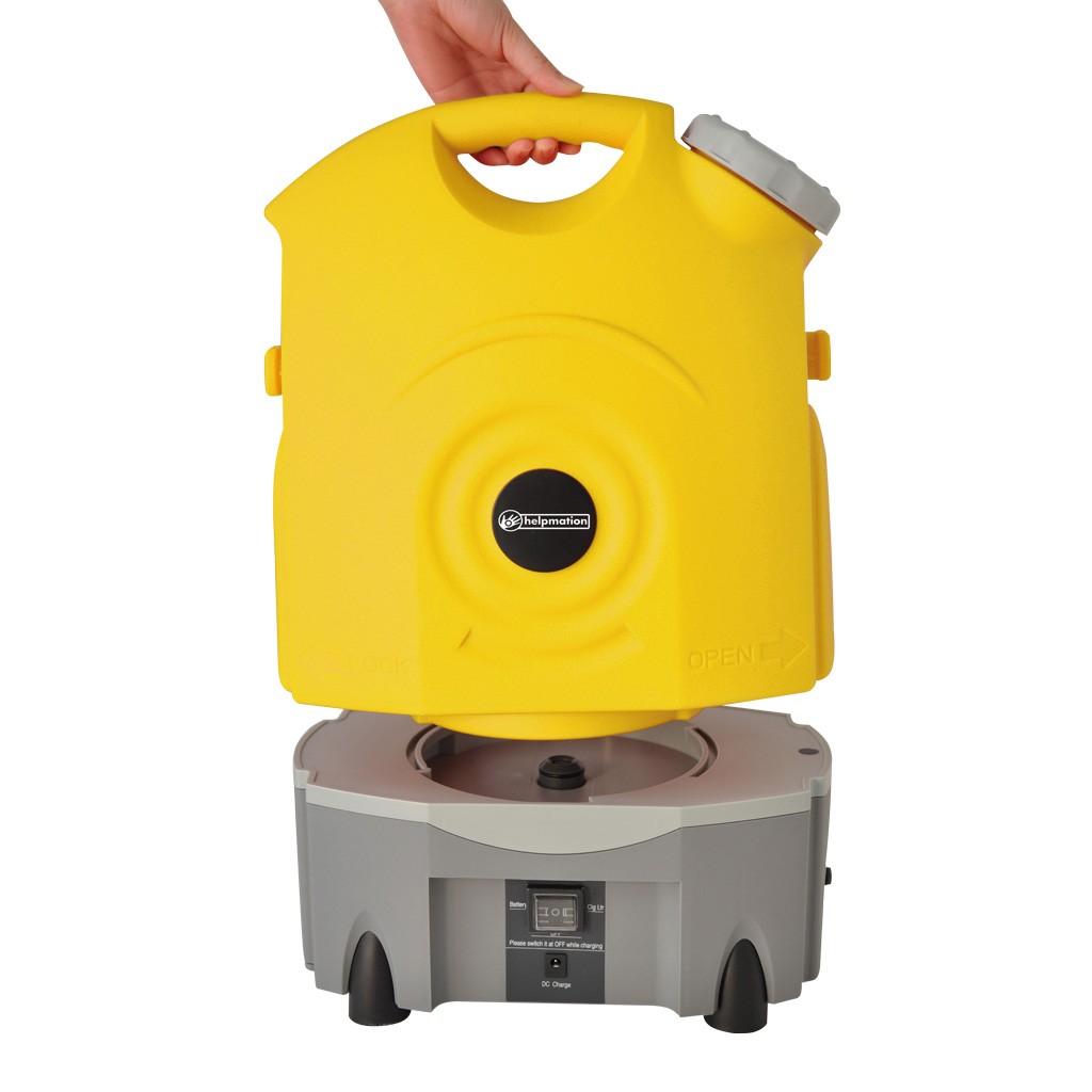 Při plném nabití vystačí kapacita baterie na vyprázdnění čtyř plných zásobníků vody. Přenosnou myčku Helpmation můžete používat na baterii, nebo zapojenou do zásuvky autozapalovače. Jednotlivá nastavení jednoduše ovládáte jedním tlačítkem.