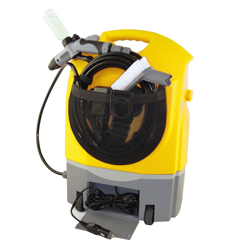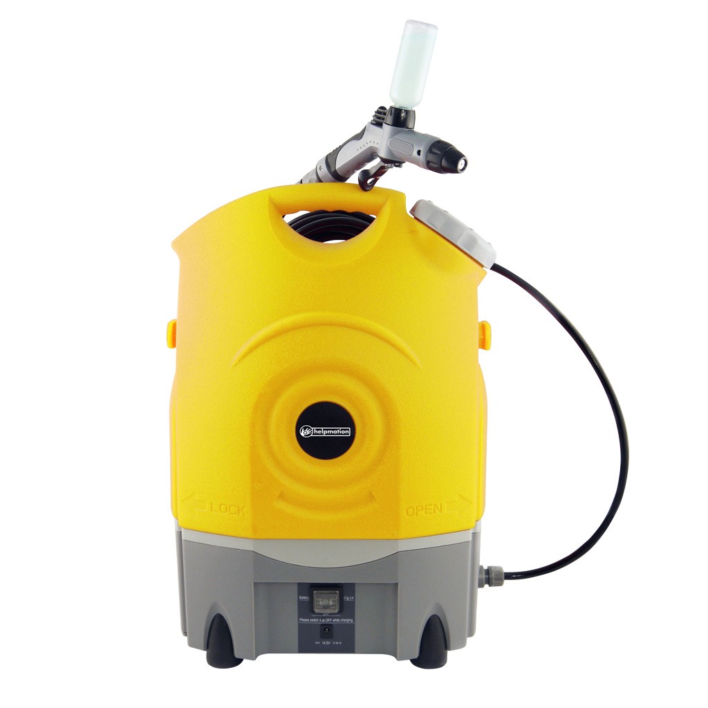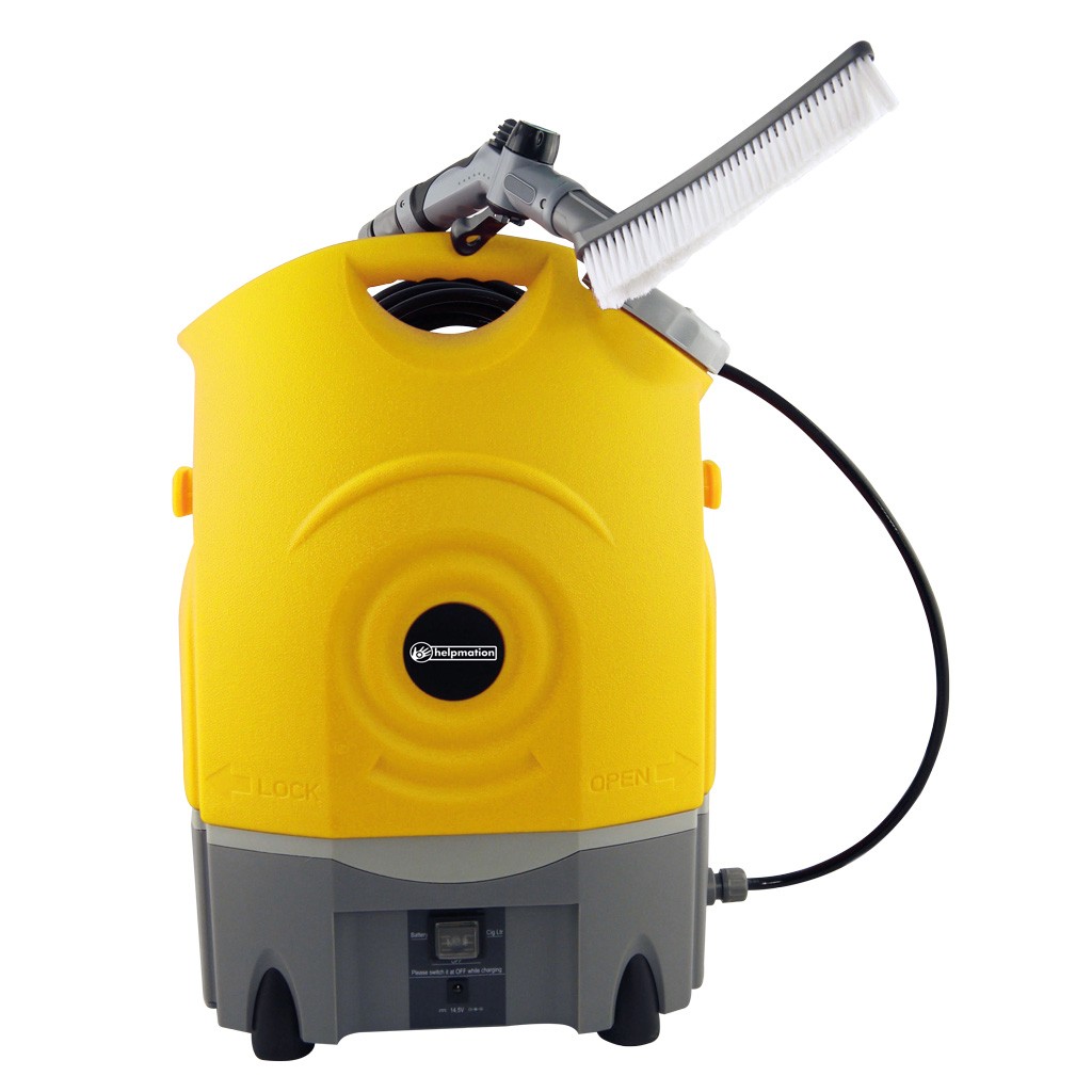 Nádrž má objem 17 litrů a můžete ji naplnit studenou nebo horkou vodou až 60°C. Pomocná kolečka a popruh přes rameno usnadňují manipulaci a přenášení. Součástí balení je tlaková pistole s regulací proudu vody a zásobníkem na saponát, speciální kartáč a sprchová hlavice. Přenosná myčka Helpmation je lehká, kompaktní a pracuje nezávisle na zdroji elektřiny a nepotřebuje hadici s přívodem vody. Používat ji můžete na baterii nebo zapojenou do zásuvky autozapalovače. Helpmation nabízí svým uživatelům naprostou nezávislost mytí kdykoliv a kdekoliv potřebují.