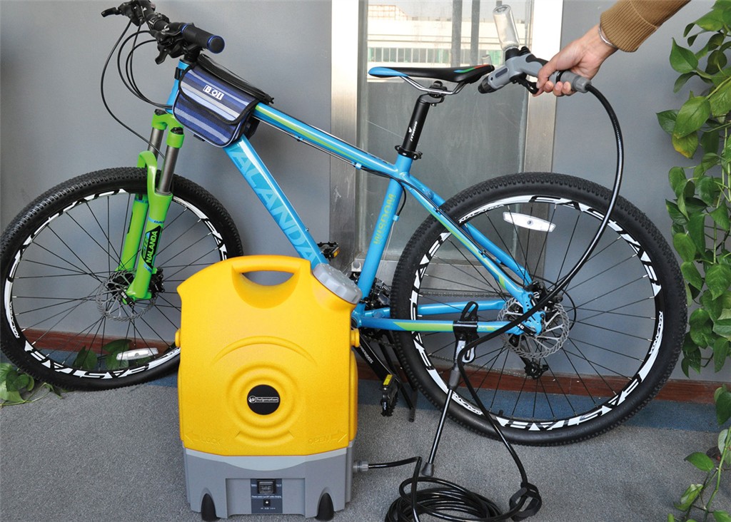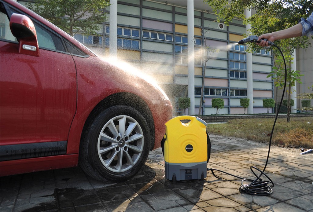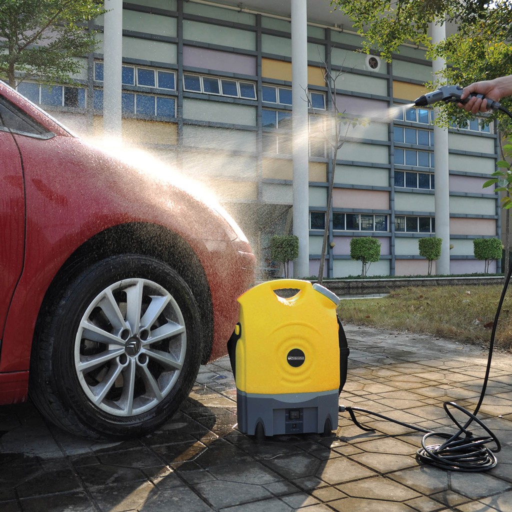 K mytí automobilu či kola využijete tlakovou pistoli, kterou regulujete tlak vody od 3 do 9 bar. Pro opravdu důkladné mytí naplníte malý zásobník saponátem a lehce jej připojíte na tlakovou pistoli.
