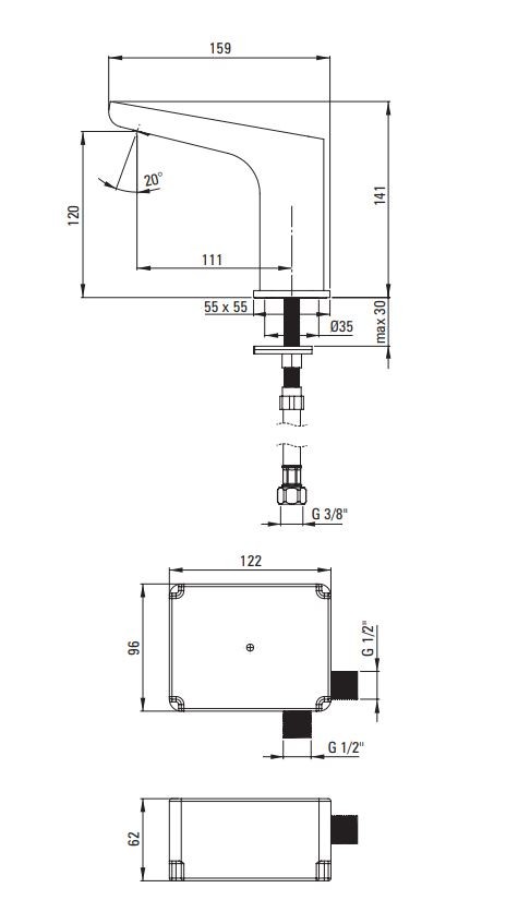 Vestavěný senzor snímá pohyb ruky pod výlevkou a reaguje na jeho přítomnost. Umístit lze jak na veřejných místech, tak v soukromých koupelnách, kde obyvatelé dbají na ekologii a šetří vodu i peníze. Jedná se o model bez regulace teploty vody. Napájení 4xAA.